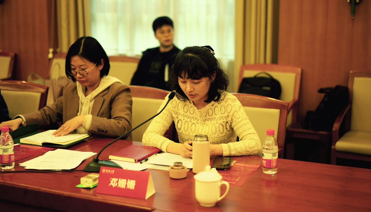 邓姗姗介绍了学院特色社团——模拟联合国协会的培育情况,表示当前学院加快“新文科”建设,响应构建中国自主的外语教学体系,探索“外语+”人才培养模式,充分融入学科思政这一重要元素,全面培养学生的报国志向、学术志趣,打造家国情怀、全球视野、专业本领三个维度的学科思政引领卓越育人新范式,在学科思政的实际建设中实现“脱虚入实”。
